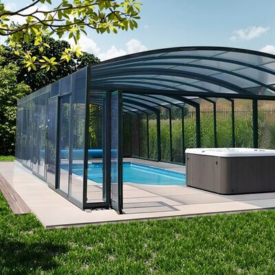 Retractable Automatic Swimming Pool Safety Cover Custom Dome Hard Pool Cover with Tempered Glass Hotel Park Use 5 Year Warranty