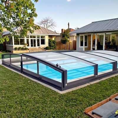 Multifunctional Polycarbonate Pool Cover Retractable Folding Pool Enclosure for Outdoor Running Pool for Villas Hotels Flat Roof 0Multifunctional Polycarbonate Pool Cover Retractable Folding Pool Enclosure for Outdoor Running Pool for Villas Hotels Flat Roof 2