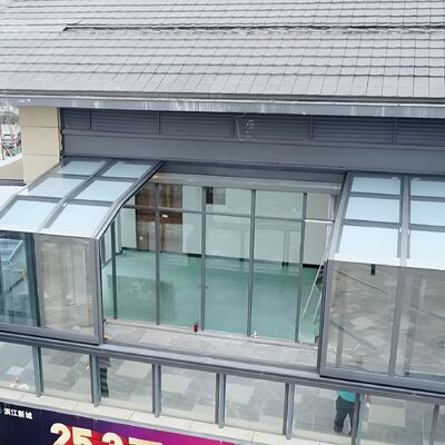 Contemporary Retractable Extendable Outdoor Glass Mobile Sunroom with Ground Covering Enclosed Roof for Apartment Park Courtyard 54Contemporary Retractable Extendable Outdoor Glass Mobile Sunroom with Ground Covering Enclosed Roof for Apartment Park Courtyard 56