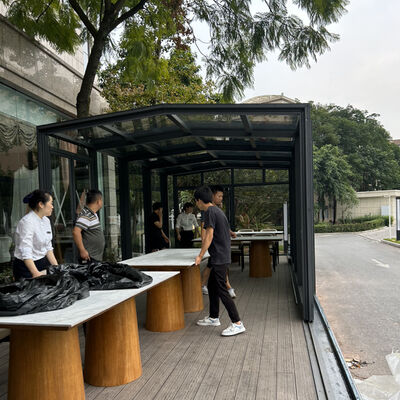 Electric Retractable Sunrooms Modern 4-Season Pool Enclosure with Tempered Glass Flat Roof for Outdoor Use 0Electric Retractable Sunrooms Modern 4-Season Pool Enclosure with Tempered Glass Flat Roof for Outdoor Use 2