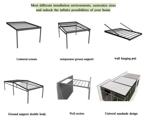 4. ARE THERE STANDARD AND CUSTOMIZED SIZES? Yes, we have 3m x 3m, 3m x4m, and other standard sizes.And the design of the open roof system is very flexible, so it can be customized. We will assist in designing the length and direction of the louvers to best fit your area.
